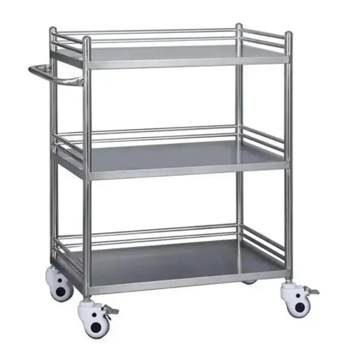 3-shelf instrument trolley with durable stainless steel construction. Default size 50×40×86 cm (two-layer, extra small, without drawers). Contact us for other sizes or custom options.