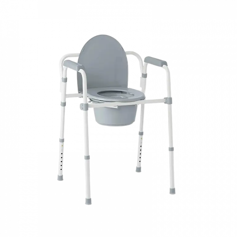 A sturdy and comfortable commode chair designed for home care and hospital use. Features a lightweight frame, removable bucket, and adjustable height for easy toileting support for patients or elderly users.